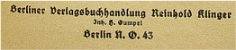 Reinhold Klinger, vermutlich erste Auflage in diesem Verlag