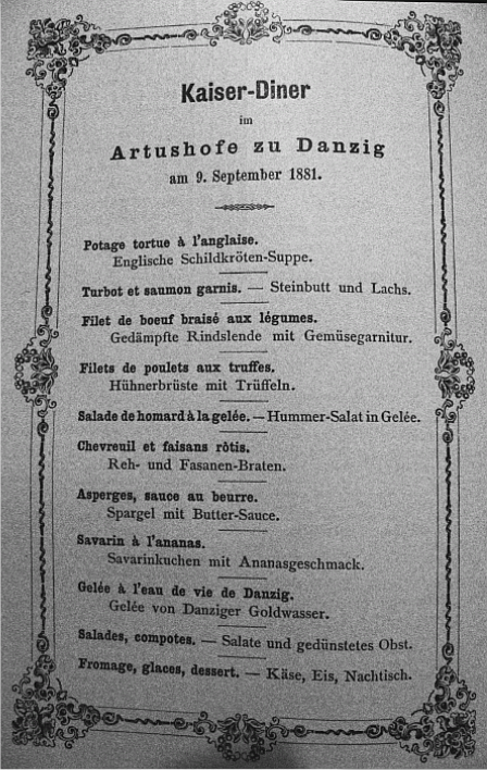 Alle diese majestätischen Mahlzeiten ähneln sich sehr stark: Schildkrötensuppe, Steinbutt, Lachs, Rind. Wenn man dreimal
