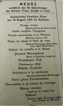 Trüffelsoufflé, Lachsforellen, Rind- und Kalbfleisch,
